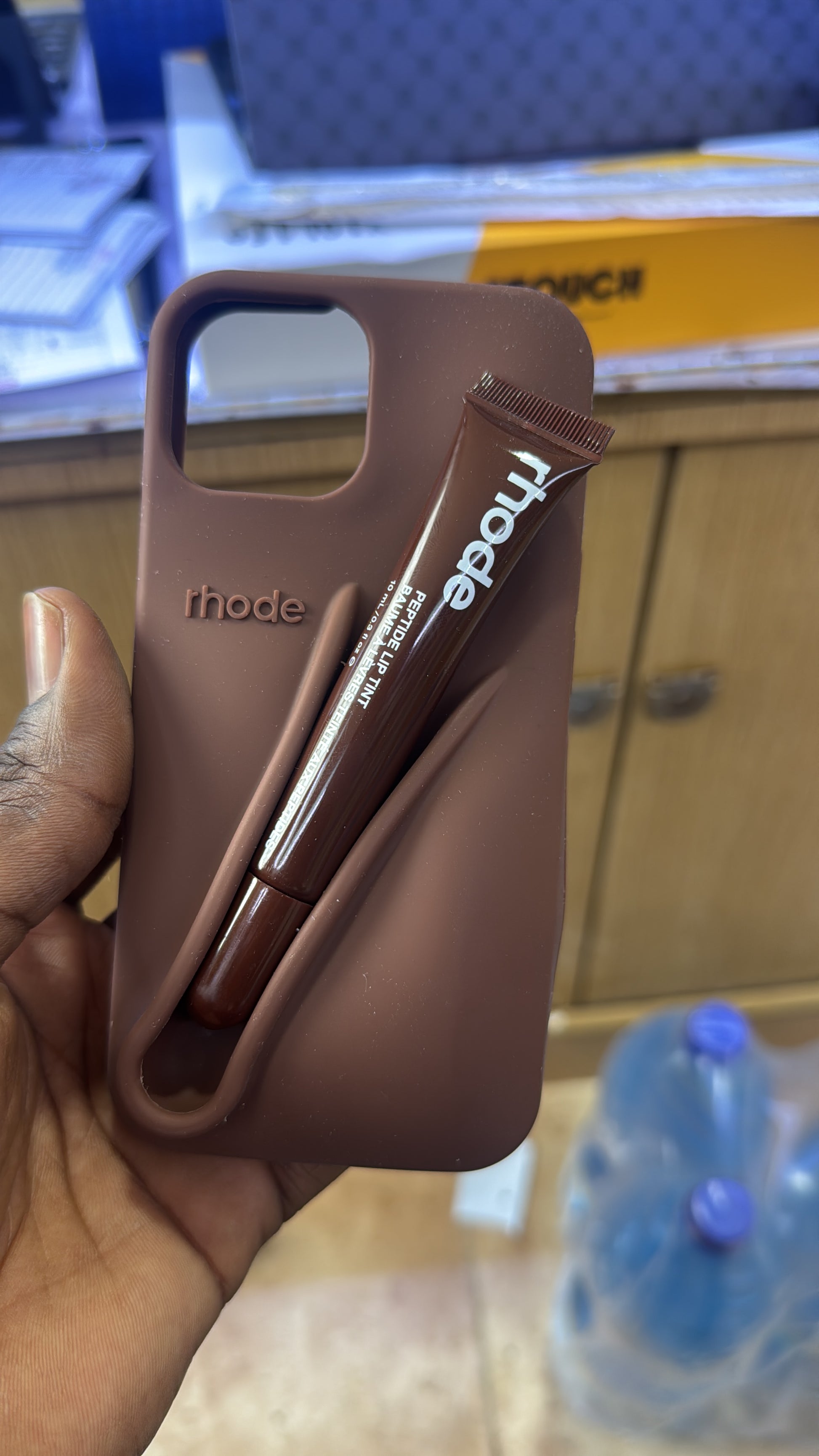 Nueva marca Rhode: funda de teléfono con brillo labial incorporado para iPhone 16, 15, 14, 13, 12, 11, 16E, Pro Max y Plus Estuche de silicona multifuncional con bálsamo labial y diseño elegante.